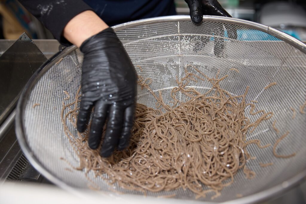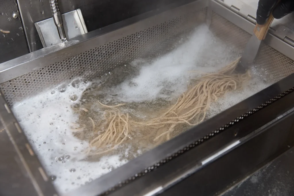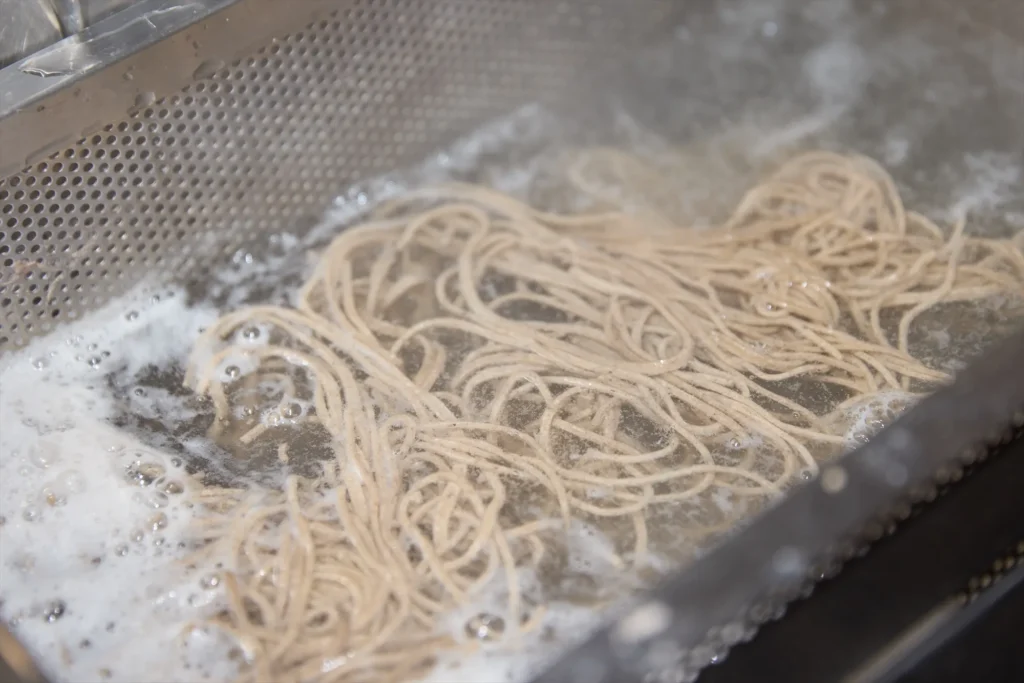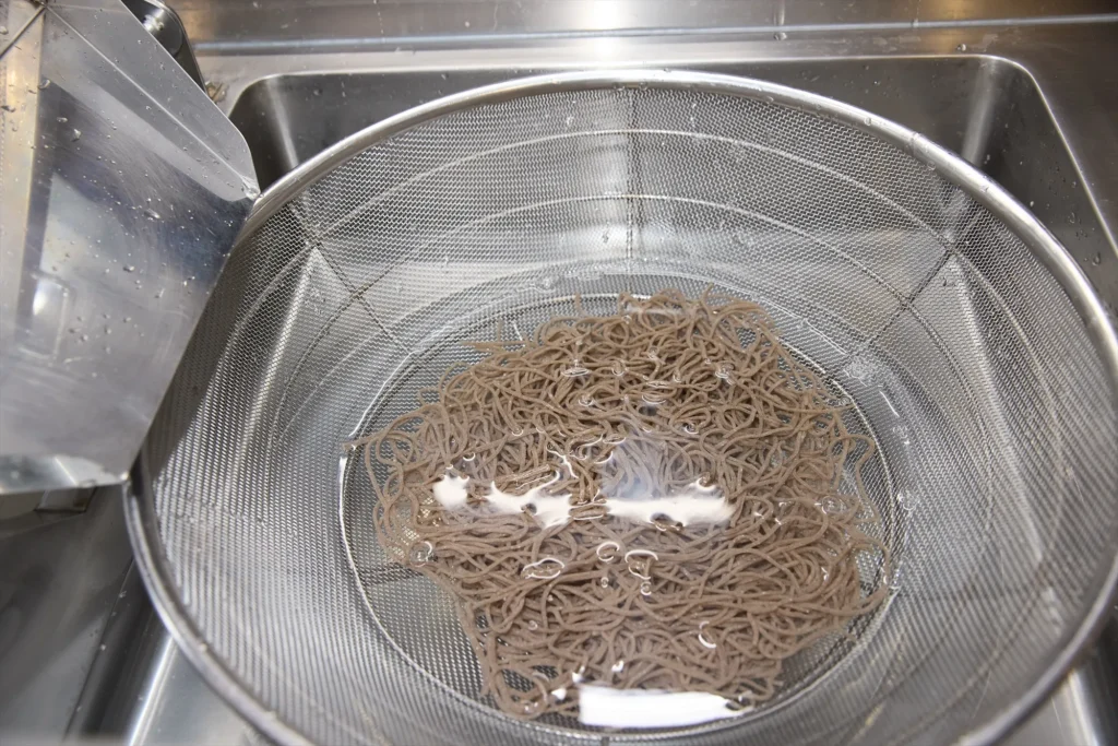 粗さの違う蕎麦粉を独自の割合でブレンドすることで、蕎麦本来の風味と食感が絶妙に調和した一杯に仕上げています。常に理想の風味を