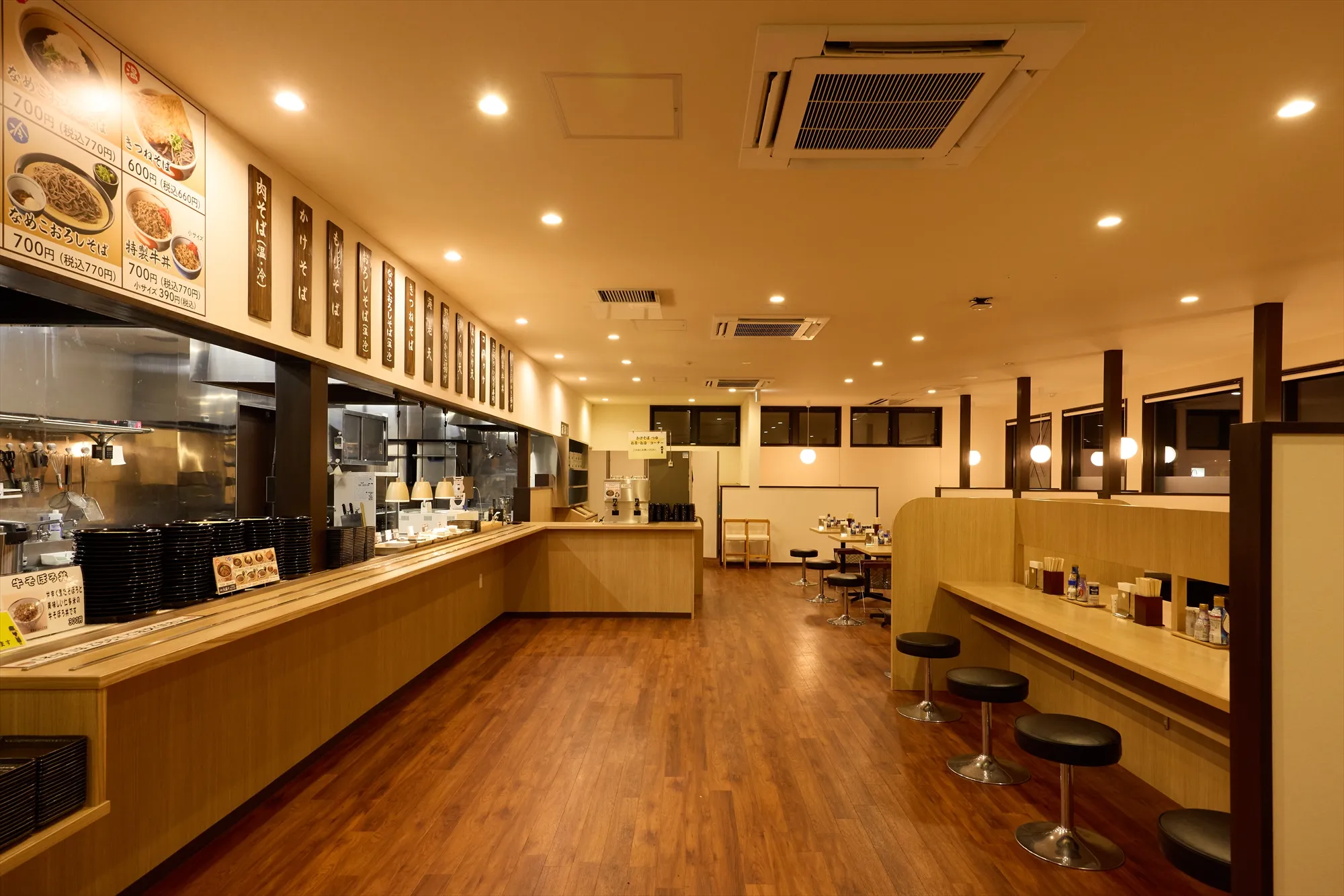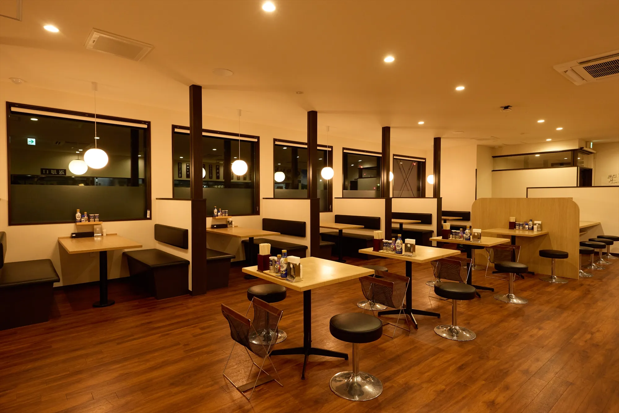 広々とした店内はどなた様でも快適にお過ごしいただけるバリアフリー設計で、車椅子のお客様やご年配の方も安心してご利用いただけます。ご家族連れやお子様も大歓迎です。